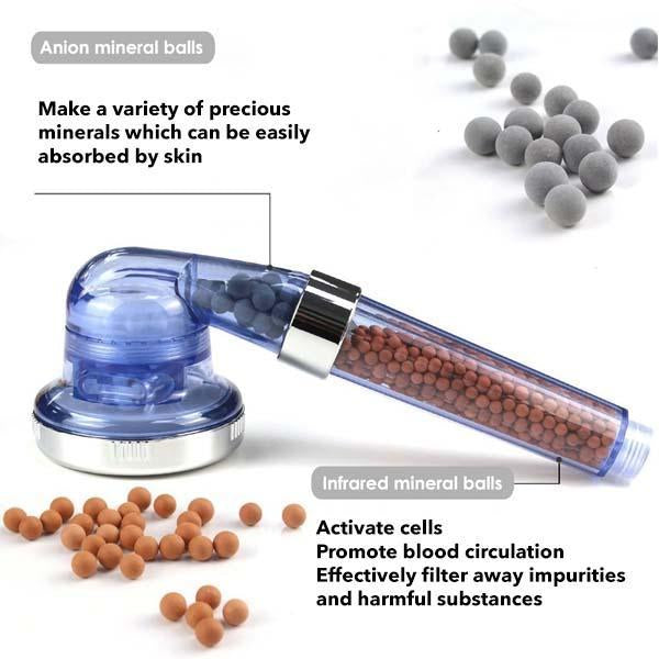 Descrição: Rejuvenesça sua pele com este chuveiro purificador que possui 2 camadas de pedras minerais bioativas que podem filtrar substâncias prejudiciais enquanto retêm os minerais na água. Com 3 modos de banho, uma experiência saudável e relaxante é garantida! Tenha a experiência de um spa luxuoso em casa com este chuveiro com filtro iônico de alta pressão hoje.