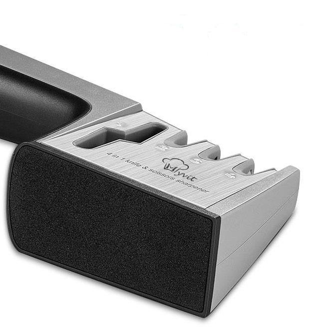 Afiamento efetivo e rápido: Não precisa pagar um especialista para afiar suas facas. Simplesmente coloque a lâmina no espaço desejado e gentilmente puxe a sua faca ou tesoura algumas vezes em sua direção, em alguns segundos elas estarão prontas.