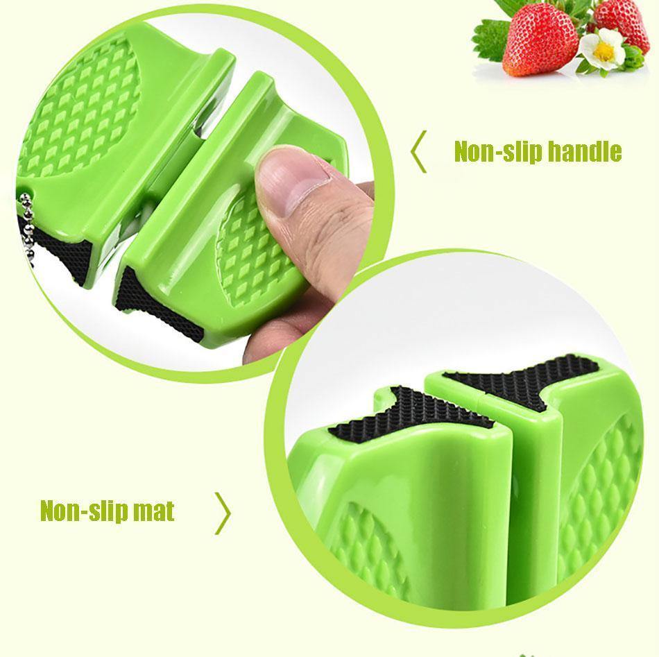 Características 1. Não desliza ao afiar a faca 2. Antiderrapante devido a base de borracha 3. Unifica funções de corte e afiação 4. Fácil de manusear e afia rapidamente 5. Seguro, fácil de usar e de limpar