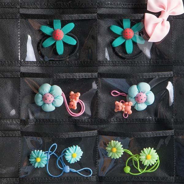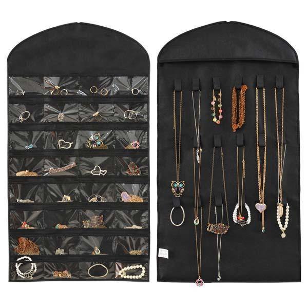 Descrição: Organize suas jóias com este organizador pendurado de jóias! Este organizador de jóias possui 32 bolsos e laços de velcro na parte de trás para armazenar jóias facilmente.