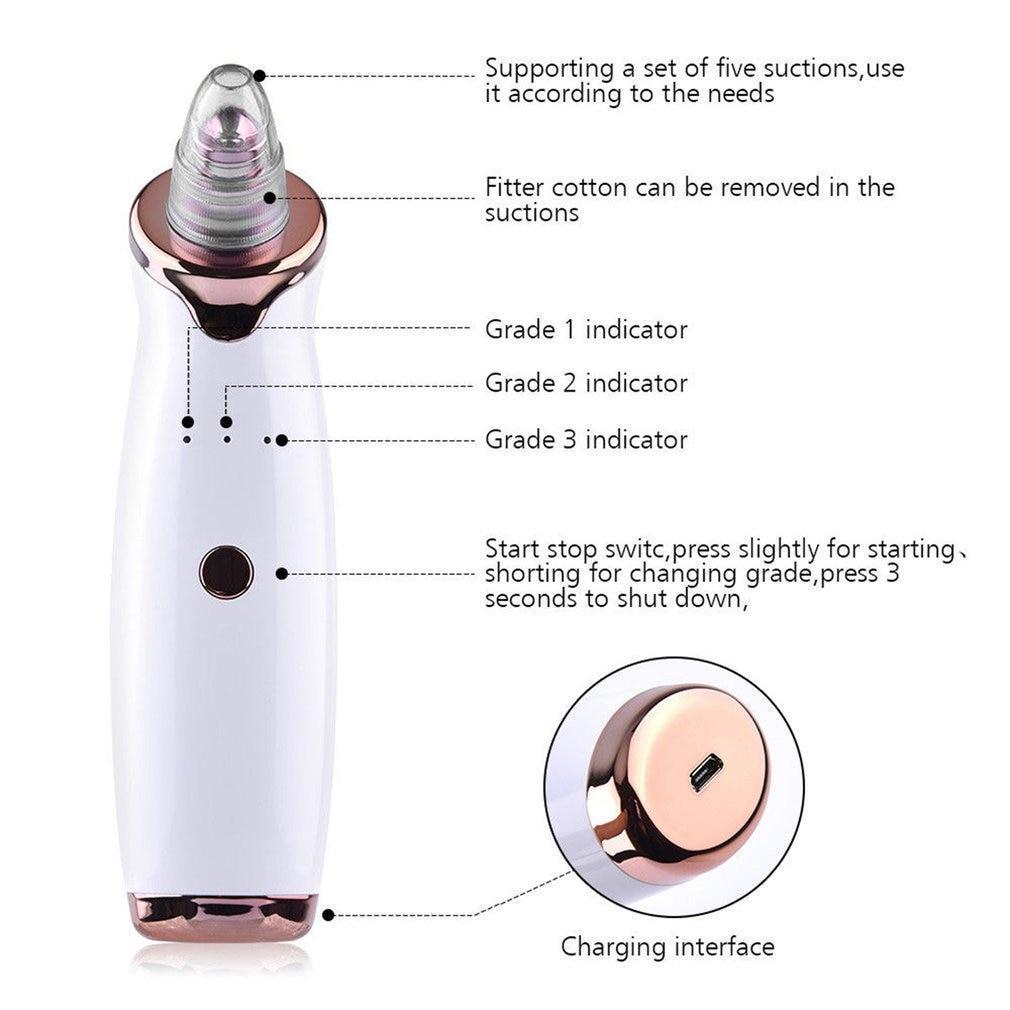 Principais CaracterÃsticas: Remover cravos e profundamente limpa rosto Usado para o tratamento da acne e espinhas Tratar a pele flácida e sulco, a regeneração da pele Tratamento de manchas e pele escura Forte sucção Carregamento USB
