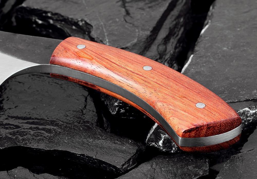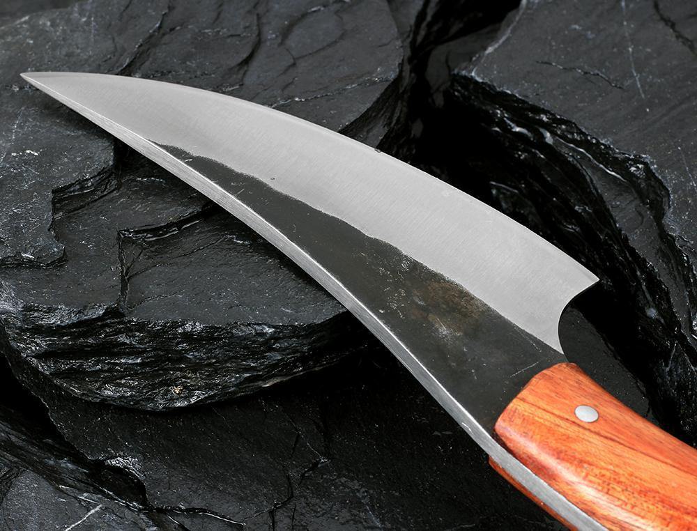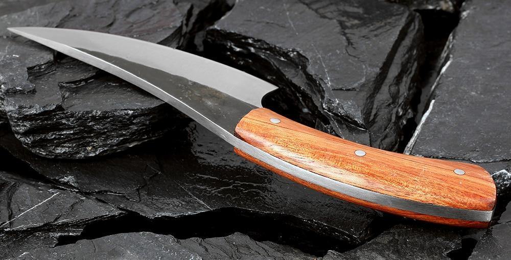 A lâmina dessa faca é extremamente afiada e estreita, que faz com que cortar carne e vegetais se torne uma tarefa muitosimples. O cabo de madeira foi projetado para ser muito confortável ao segurá-lo.